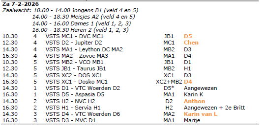 Vind hier het meest recente fluit- en telschema voor de thuiswedstrijden.